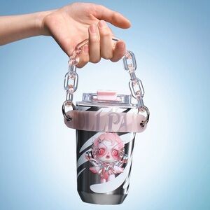 Extremely well-made new Skull Panda tumbler. Includes a detachable cup sleeve and detachable heavy duty chain for convenient carrying.