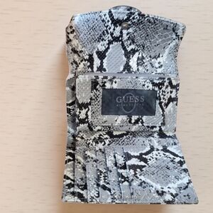 Chic Vintage Guess wallet with dark blue denim and snakeskin details. Elegant design for any occasion.