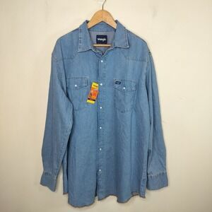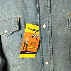 Wrangler Cowboy Cut Western Work Shirt Classic Fit Pearl Snap Denim