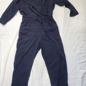 Stylish navy jumpsuit by Madewell. Features a wrap front and tie waist. Perfect for any occasion.