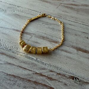 Loewe Bracelet in sterling silver with a gold finish featuring letter-engraved cubes and an Anagram Pebble. Adjustable.