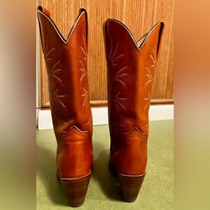 1980 Vintage Frye Leather Cognac Tree Art Embroidered Cowboy Boots