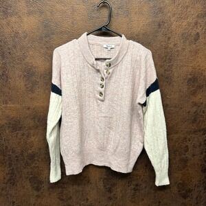 Madewell Oversized Small Pink Cream Navy Knit 5 Button Baseball Sleeve Wool Alpaca Blend Sweater (Fits up to a Large-see Measurements)