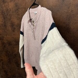 Madewell Oversized Small Pink Cream Navy Knit 5 Button Wool Alpaca Blend Sweater