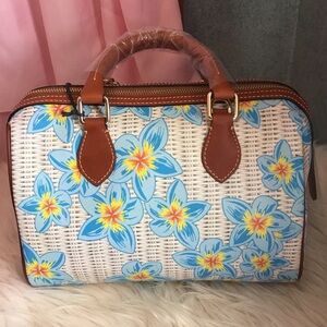 Dooney plumeria floral barrel satchel