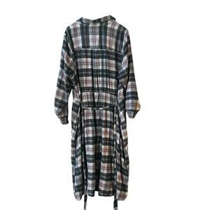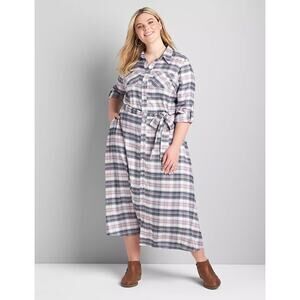Lane Bryant Plaid Button Down Long sleeve Shirt Dress Size 24 Gray Multi