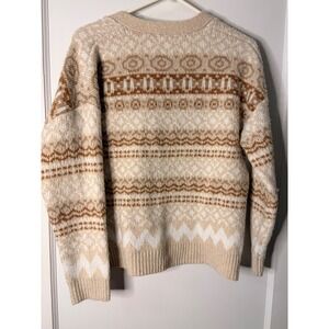 Cupcakes and Cashmere Womens Medium Fair Isle Cardigan Sweater Beige Brown Knit