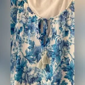 Show Me Your Mumu Juana Tassel Tunic Mini Dress Mother Blues Floral Size Small