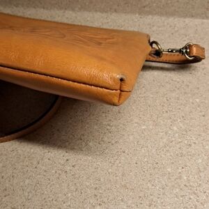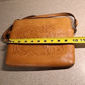 Patricia Nash brown tooled floral leather crossbody bag.