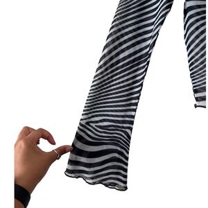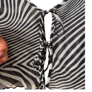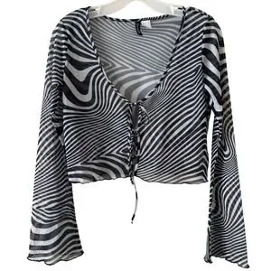 H&M Divided Zebra Psychedelic Mesh Tie Front Crop Top Flare Sleeve Black White M