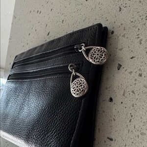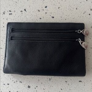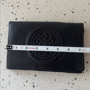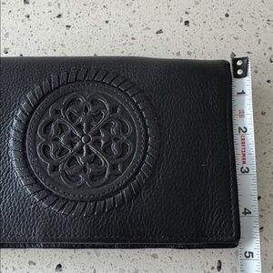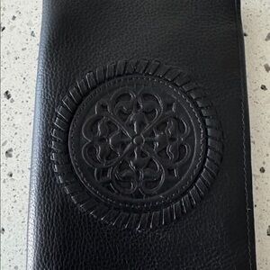 Brighton Ferrara Folio Wide Black Leather Wallet Embossed Pattern Travel Casual
