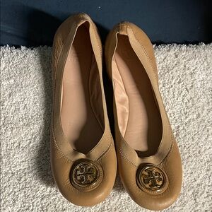 Chic leather flats with signature logo detail. Comfortable and stylish for everyday wear.