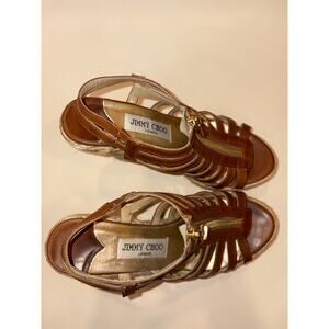 Jimmy Choo espadrille wedges brown/ tan with zipper womens size 38