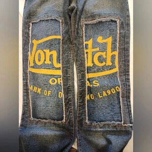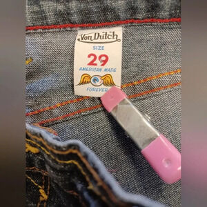 Von Dutch Vintage EUC Low Rise Flare Med Wash Graphic Jeans Size 29