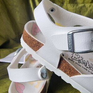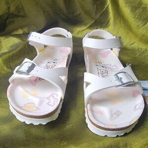 White Birki's Sandals with Beach Themed Insole Size 13 Girls