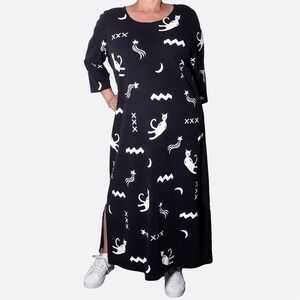 Celestial Whimsigoth Cat Moon Star 100% Cotton Maxi Dress Plus 1X Made in USA
