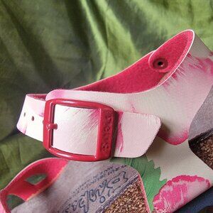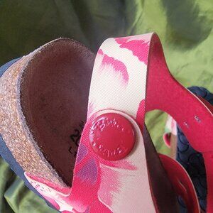 Birki's Red Hibiscus Sandals with Buckles for Girls