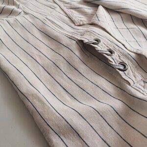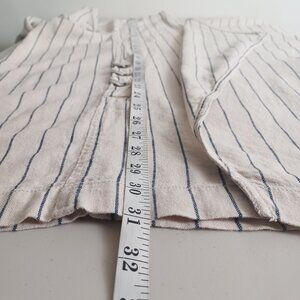 A layering top in a neutral cream shade with black vertical stripes. The fabric is flowy with no stretch. Oversized cut for easy movement. Perfect for spring and summer outfits. Gently worn, excellent condition.