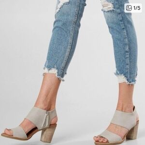 In like new condition, Tom's suede cutout sandal with a chunky heel. Great versatile sandal to pair with your favorite jeans or dress. In addition a nice cushioned insole and zip for easy on and off. Please ask any questions. Spring, Casual, Suede.