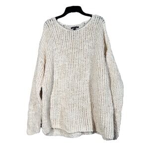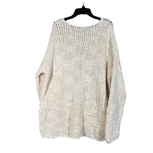 Eileen Fisher Sweater Womens Medium Cream 100% Organic Cotton Crochet Open Weave