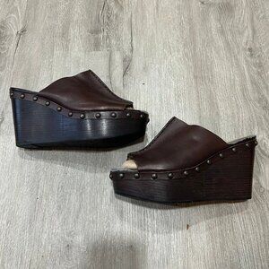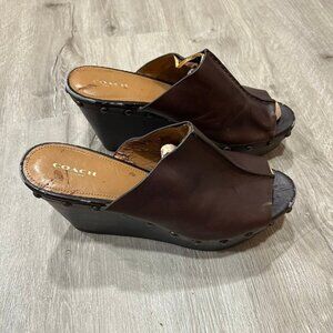 Coach Brown Hellena Leather Wedge Platform Heels Women's Size 11