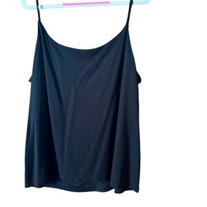 Chic black camisole with a draped neckline. Perfect for layering or wearing alone. Versatile and stylish. Measurements appropriate Length 26” pit to pit 23 1/2”