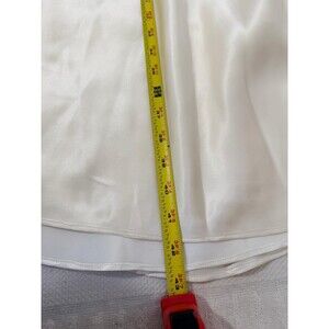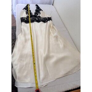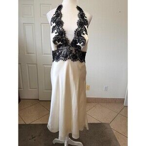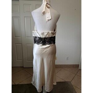 This White House Black Market halter satin lace midi dress in XS/S is a romantic and elegant option for weddings, parties, or cocktails. The dress features a V-neckline, sleeveless design, and a zip closure for easy wear. Made from polyester with a satin fabric type, the dress is lined for added comfort. The beige and black color combination and lace accents add a touch of sophistication, making it a perfect choice for a formal occasion, evening event, or wedding guest ensemble