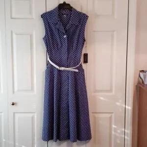 NWT Tommy Hilfiger Navy Polka Dot Belted Shirt Dress Size 10
