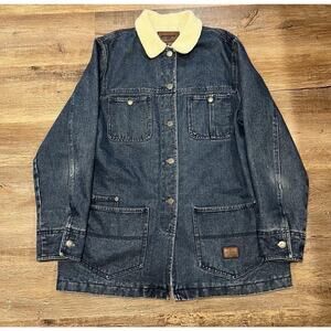 VTG Ralph Lauren Denim Chore Coat Barn Faux Shearling Collar Blue Lined L