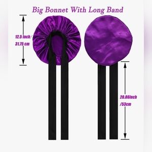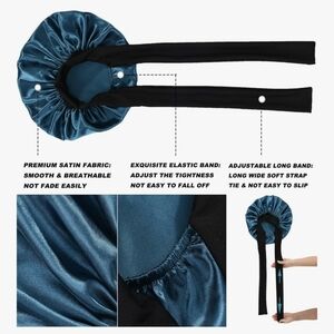 Keep your hair protected with this elegant satin hair bonnet. Available in black. This bonnet offers both style and comfort. Perfect for nighttime wear or as a chic accessory. Listing is for one black bonnet.