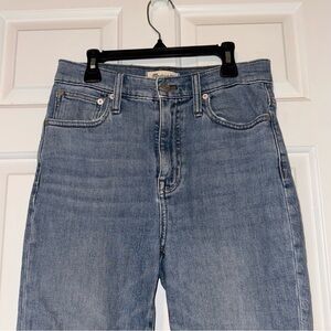 Madewell The High Rise Slim Crop Boyjean Jeans Distressed Raw Hem medium blue 24