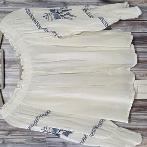 American Eagle Outfitters Off-Shoulder Blouse - Cream and Blue Size L
