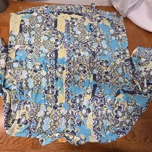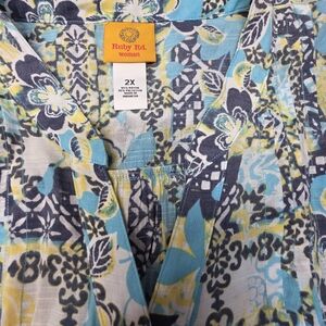 Ruby Rd Woman Blue Green Multi-Color Roll Sleeve Plus Size 2X Top
