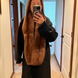 Luxurious Russian Sable brown fur scarf with a soft pink lining. wild free sable from the Yakut forests