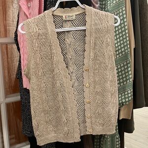 Vintage D’Allairds Beige crochet Vest made in Canada in size small-medium