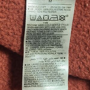 Super soft Old Navy sherpa fleece hoodie in a warm rust/orange tone. Perfect layering piece for fall and winter. Features a cozy hood with drawstrings, full zip front, and front pockets. Comfortable and versatile for casual wear, lounging, or outdoor layering.