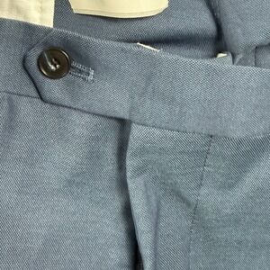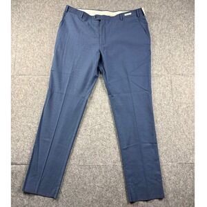 Tailored dress pants from the 1905 collection offer a sophisticated look with a modern blend of cotton, wool, and spandex for comfort and slight stretch. These suit separates feature a refined blue textured weave, flat front styling, and a sleek tailored fit suitable for professional or formal settings. Detailed with belt loops, side pockets, and button-through rear welt pockets, they provide a polished silhouette that pairs effortlessly with a matching jacket or a crisp button-down. Jos A Bank 1905 Tailored Fit Blue Suit Separate Dress Pants 44R NEW