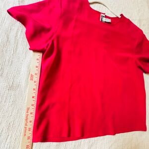 Laura & Jayne Vintage 100% Silk Women's Red Short Sleeve Blouse Women’s Size 12