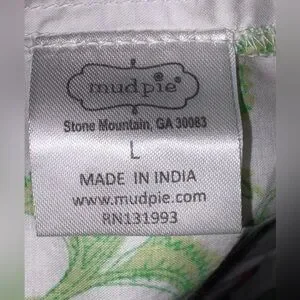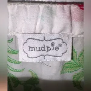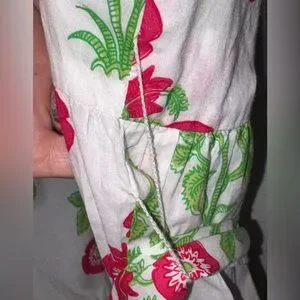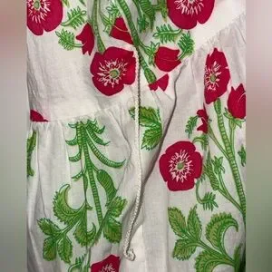 Bright white and floral V-neck dress, Mudpie Audra size L good condition however the belt loop string on one side came off. You could easily sew it back on or remove the strings completely. Retail $81.99 and out of stock currently. 100% Cotton