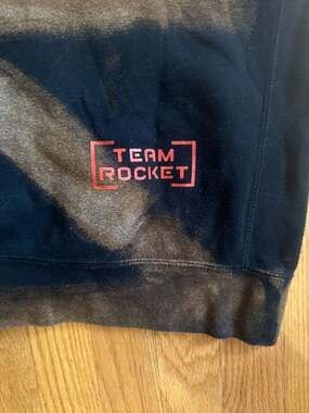 Official Pokémon Center Team Rocket Pullover Hoodie, size Medium. This item features a unique custom bleach wash treatment giving it a one-of-a-kind streetwear aesthetic.
