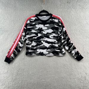 OFF DUTY BB Dakota Cropped Sweater Womens small Black Camouflage Striped Sleeve