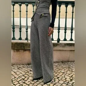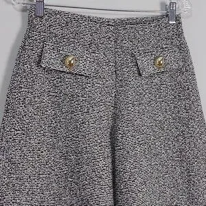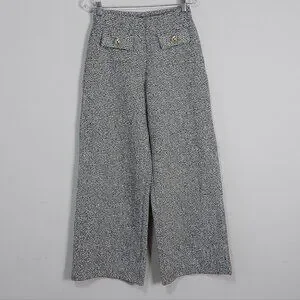 Zara Women Textured Wide Leg Pant Small Tweed Metallic Thread Gold Button