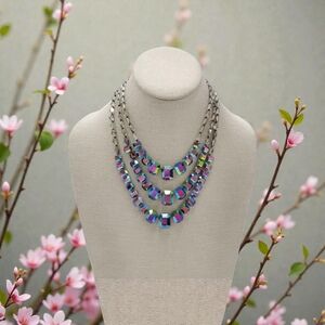 Peacock AB Aurora Borealis Glass Crystal Bead Necklace .