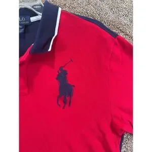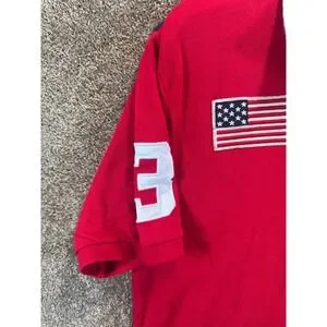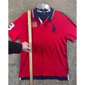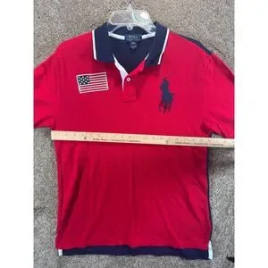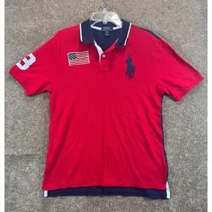 Polo Ralph Lauren Boys XL 18-20 Big Pony Red Navy Blue American Flag Polo Shirt