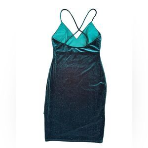 Windsor Women's Green Sparkle Velvet V Neck Mini Dress Size Small