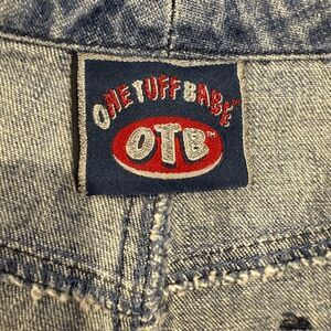 Vintage Y2K OTB One Tuff Babe Jeans Pink Paint Split Hem Medium Wash Size 7/8. Excellent condition. See photos for details and unstretched measurements. Shop my closet and bundle multiple items for discounts and one shipping fee!
