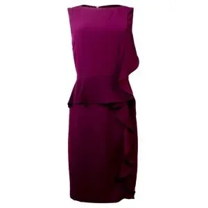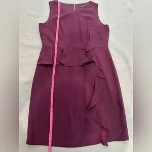 Ivanka Trump sleeveless formal party cocktail summer spring dress. Red wine purple. Women's size 14. Ruffles on the front. Gold zippered Back.