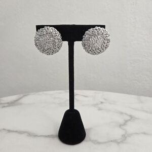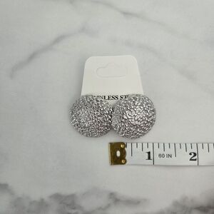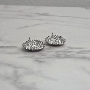 ✨️ Silver dome earrings. Crafted from stainless steel, they feature a glittery, textured surface that catches the light beautifully. Lightweight and comfortable for all-day wear, these earrings are perfect for elevating casual outfits or adding sparkle to evening ensembles.