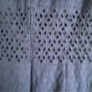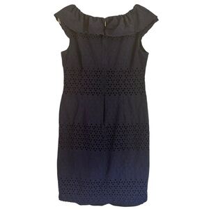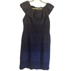 Karl Lagerfeld Paris Navy Off-Shoulder Eyelet Dress SZ 12 Ruffle Neck Cotton Mid