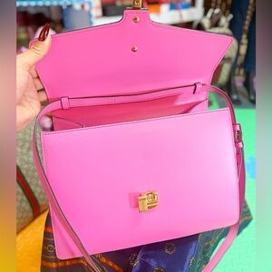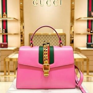 Gucci Fuchsia Leather Medium Web Sylvie Top Handle Bag-include detachable Strap